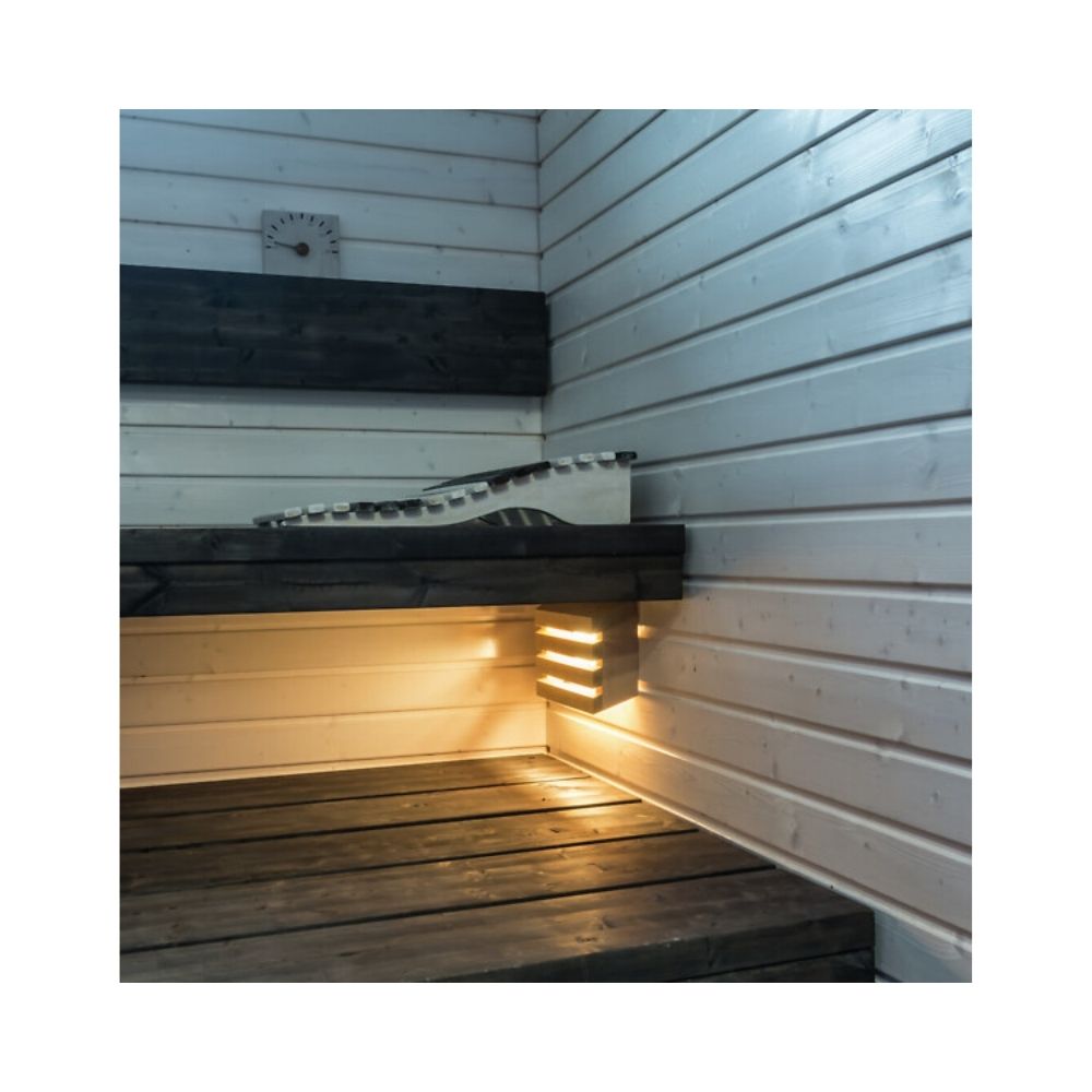 Sauna Sq on stiilne fikseeritud AC LED-iga saunalamp. Lambi puitvari on valmistatud Soomes kvaliteetsest kodumaisest lepast. Valgusti saab dimmerdada, et saaksite valguse hulka olukorrale sobivaks reguleerida. Tolmu- ja veekindlat valgustit saab paigaldada nii pinnale kui ka süvistatavale seinale. Soovitame puitdetailid enne kasutamist pind töödelda puidukaitsevahendiga. Puitosi saab ka üksikult toonida, et need sobiksid oma sauna interjööriga. Tootel on kaubamärk Design from Finland.